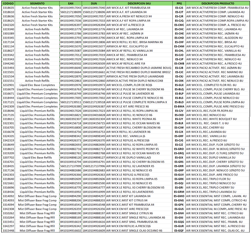 ANEXO 1 – Productos Air Wick que entran en la promoción: